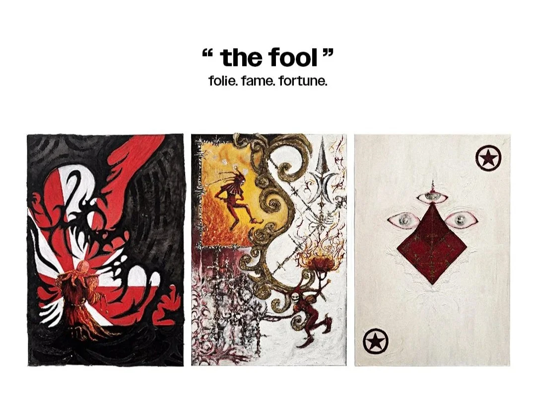 My current body of work consists of three mixed media paintings that use the jester to look at the emotional labor inside performance. I’m drawn to this figure because it lives in that strange space between honesty and entertainment. A jester can say what others cannot, but only if they keep the crowd happy. That balance feels familiar to me. It mirrors the pressure to stay composed or light even when the internal reality is heavier. The jester gives me a way to talk about what it feels like to be watched and expected to hold everything together.